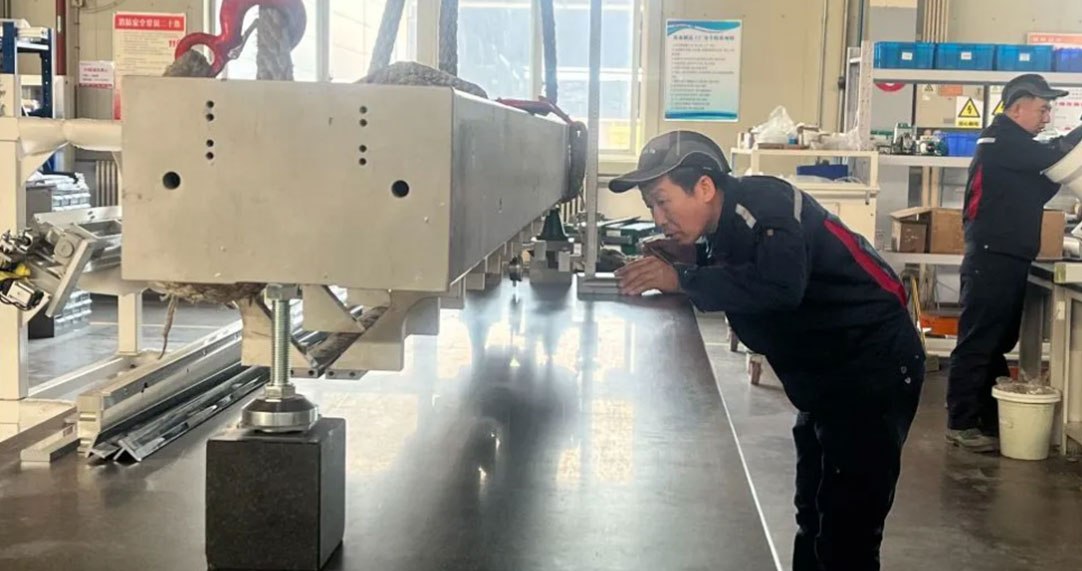 工人在对铸造3D打印设备的零部件做精度检测。(新华社记者 任玮 摄)